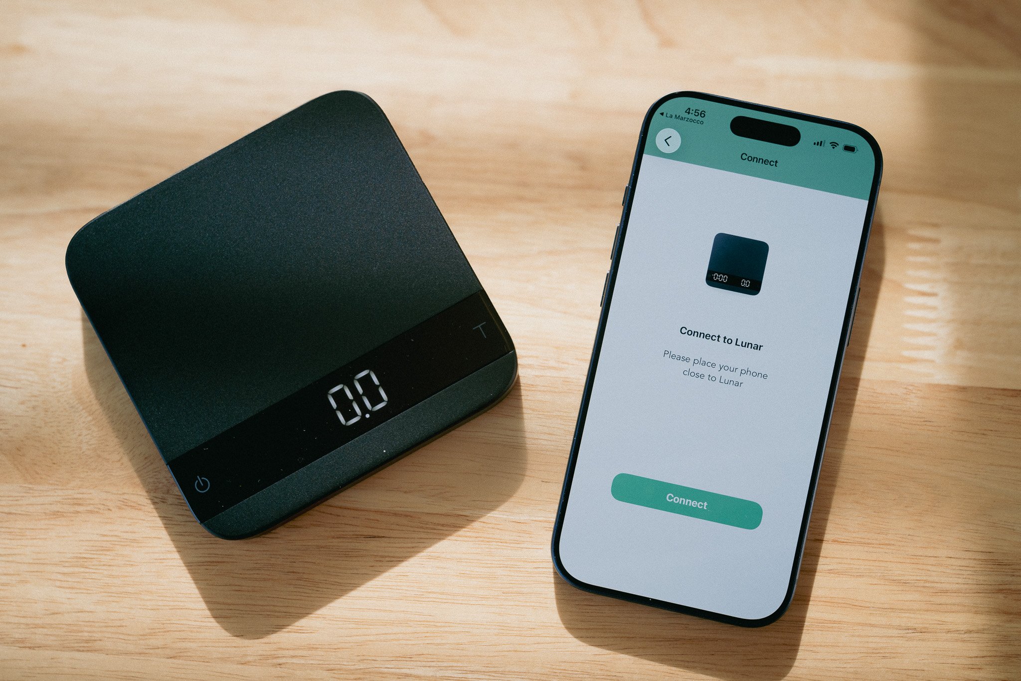 Open the La Marzocco app (v1.7.0 or later), add your Acaia Lunar to your coffee station, and follow the prompts. The app will direct you to the Acaia app to complete the license purchase and firmware installation. The whole process takes about five minutes. For step-by-step instructions, see our full setup guide.