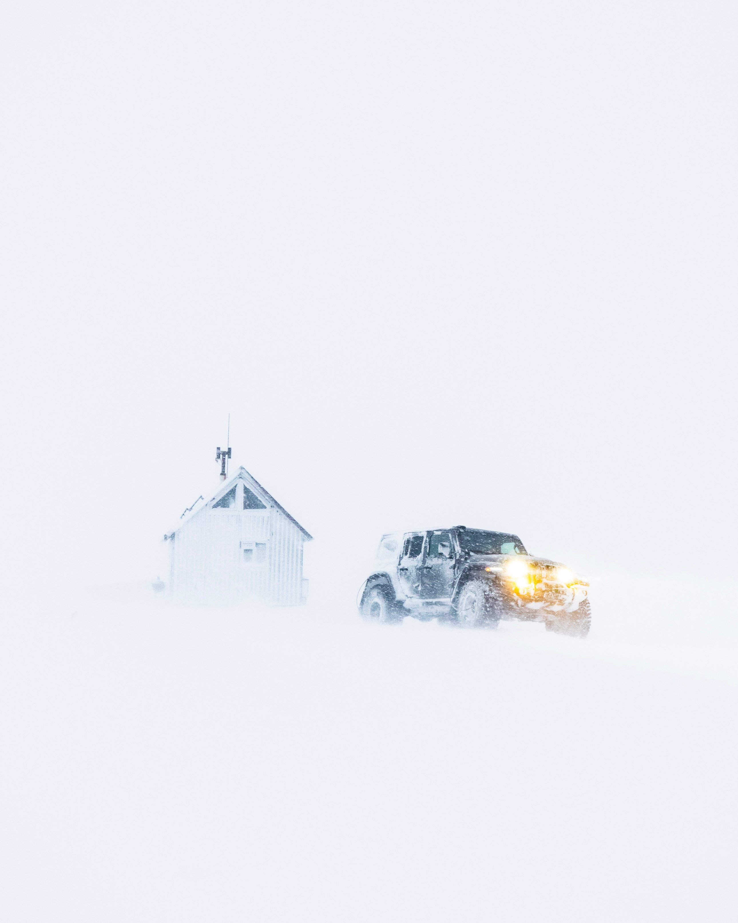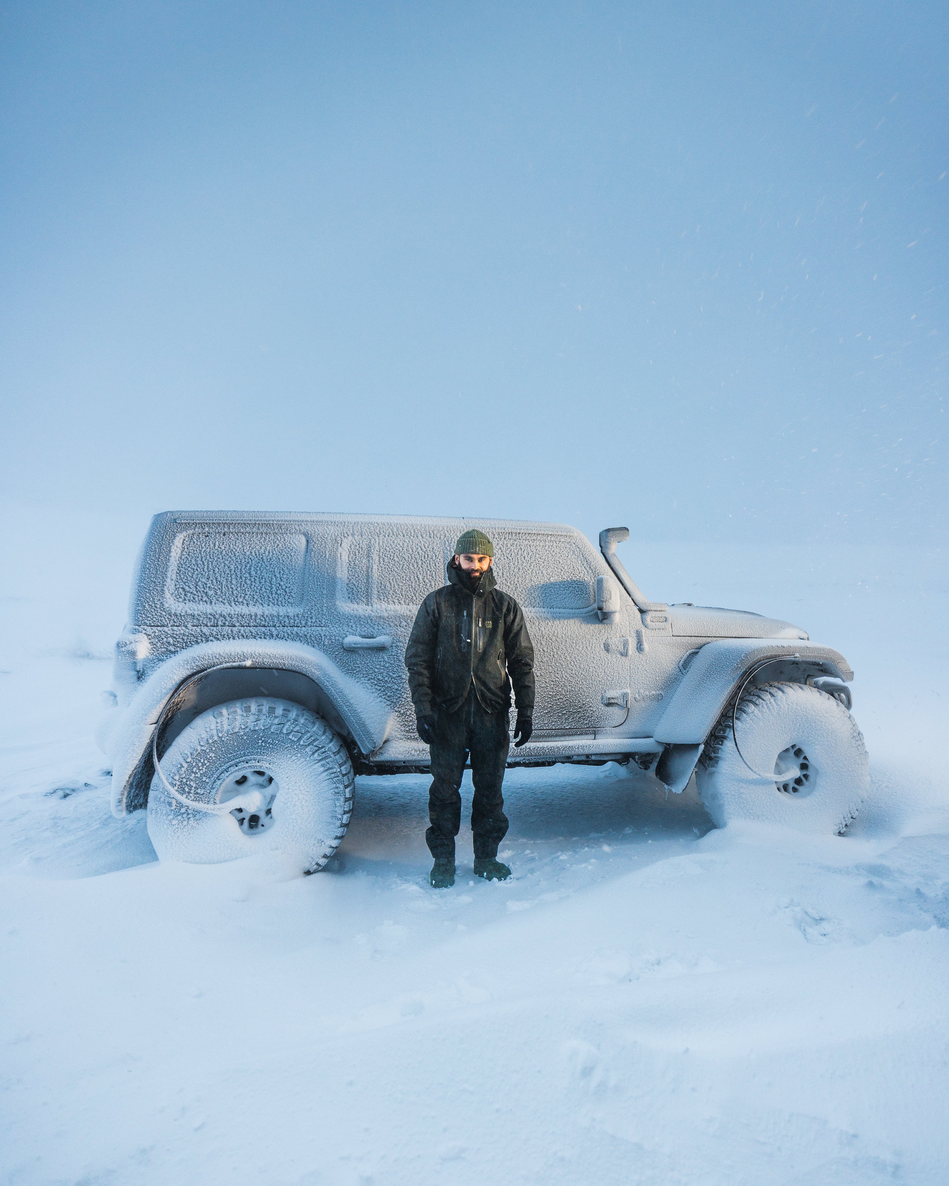 We did this shoot at the center of Iceland in the winter time. One of the most remote parts of the country. It can be a very challenging drive in our modified Arctic vehicles to reach places like this in winter, driving over ice and snow for hours. When the weather gives you a window with no wind and cold clear skies, you have to go for it.