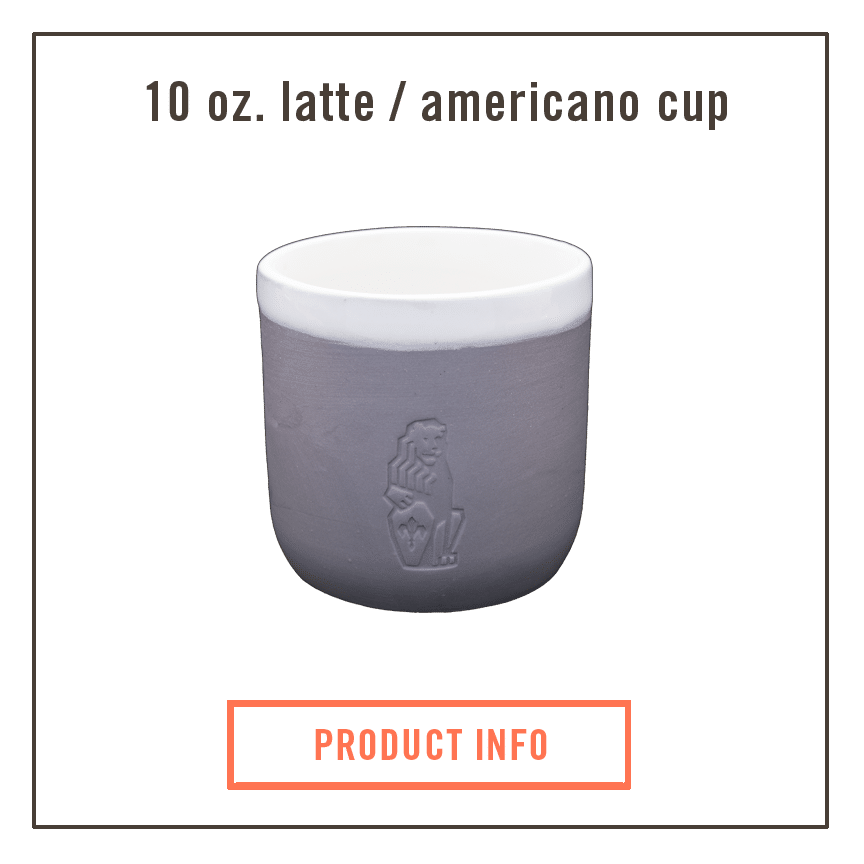 Each porcelain cup is slip-cast, glazed, then kiln-fired. The cups are lined with a bright interior white glaze, sanded, and hand-finished with a white exterior glaze around the lip, and debossed with the La Marzocco Lion.