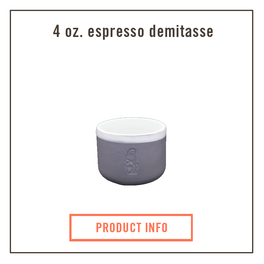 The 4 oz. demitasse ($22) is the perfect size and shape to sip and swirl an espresso or enjoy a macchiato from. The extra space in the cup allows for swirling and sensing aroma in the espresso.