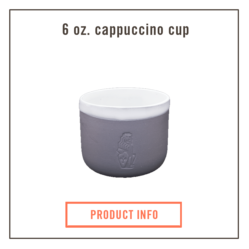 The 6 oz. ceramic cup ($26) is sized for the modern cappuccino—small and delicate, but sturdy with a wide base and large opening to pour into.