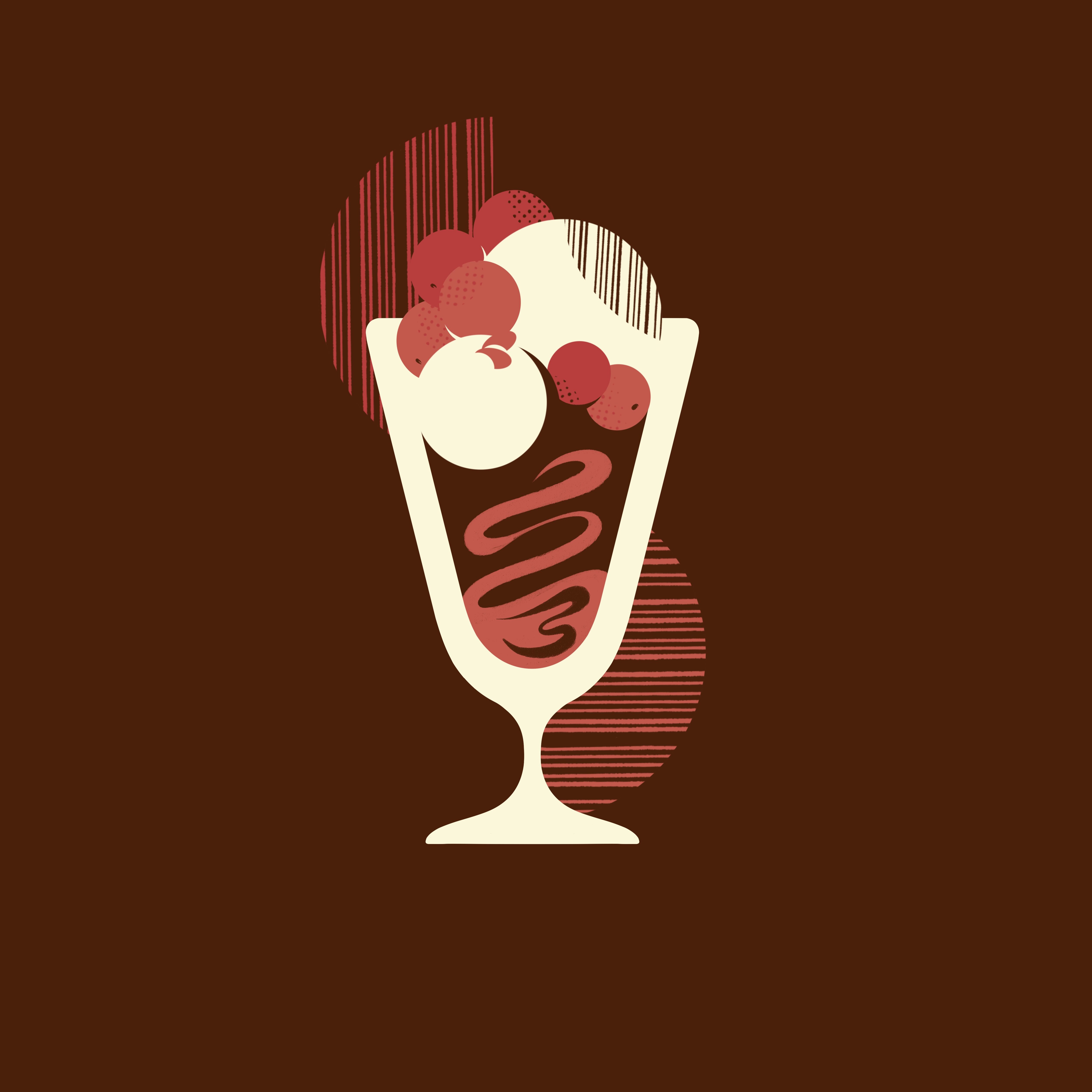 Rice pudding gelato + a shot of espresso, lingonberry jam, cinnamon sugar garnish, and a single almond.