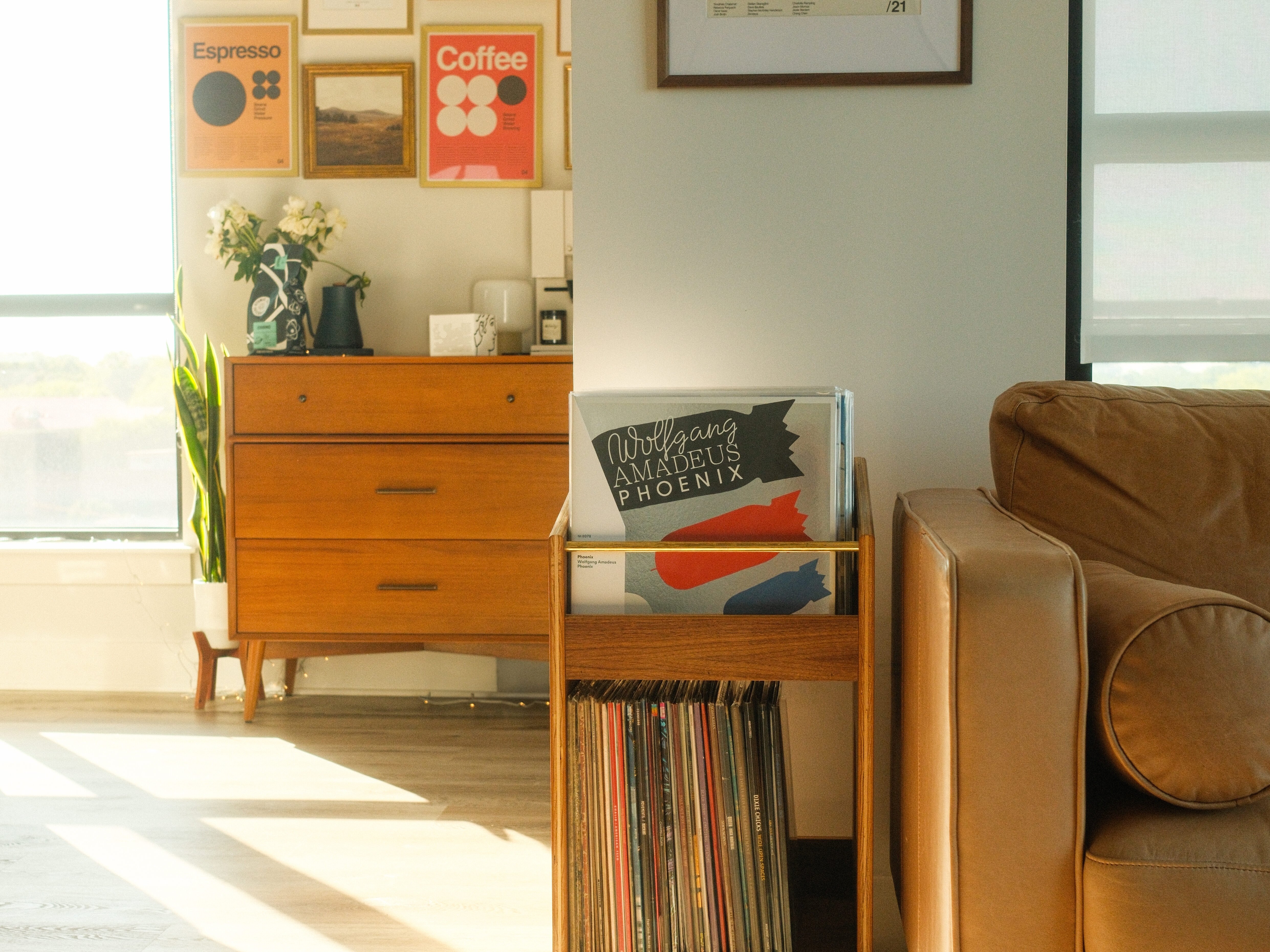 “I’d highlight Sandgrain studio—Seb creates these beautiful coffee and espresso prints, along with movie posters and other artwork. He’s an incredibly talented artist. Most of the music and art prints around the house are his, with the rest coming from Etsy or artists I’ve met along the way.”