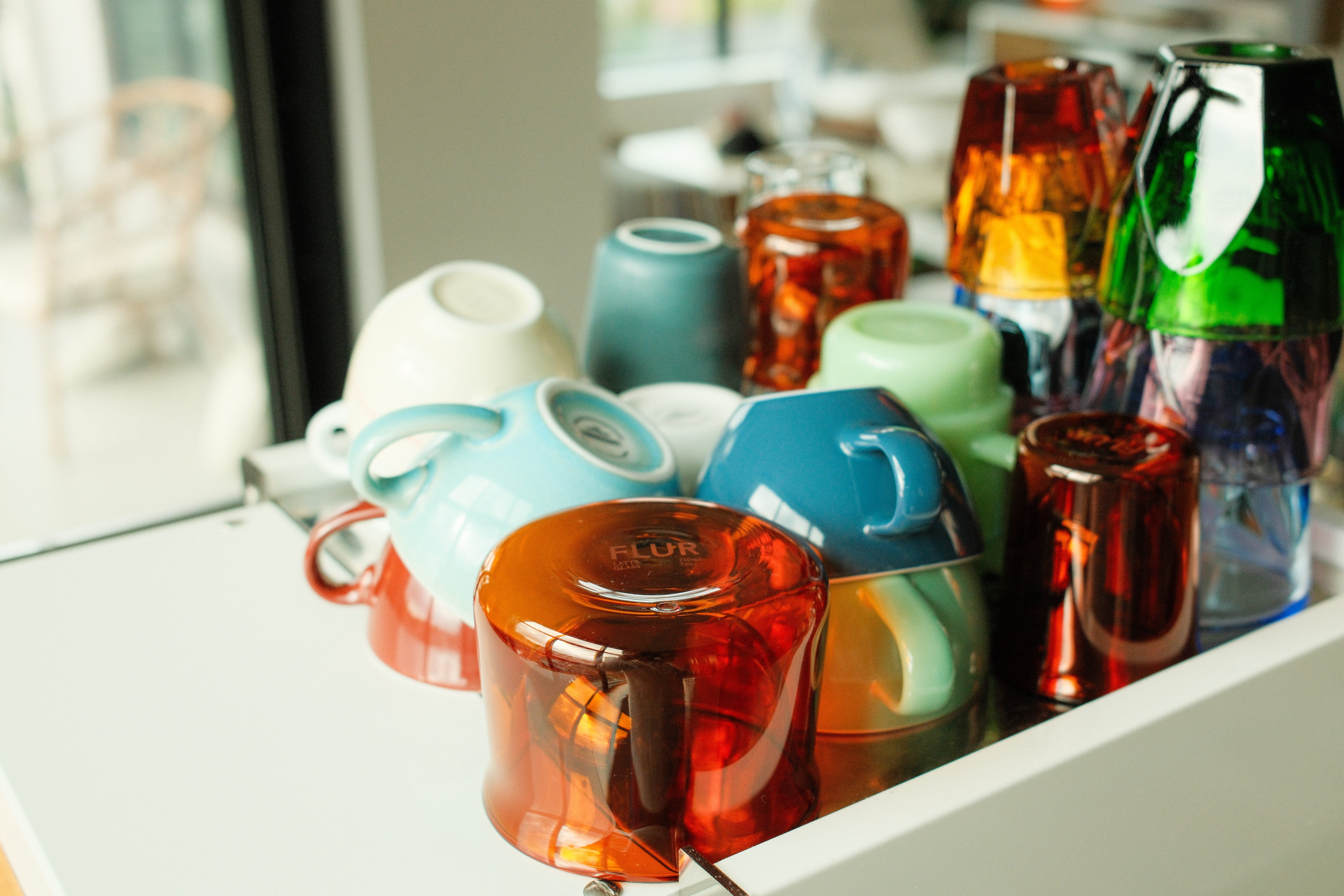 “I’ve been collecting cups in different colors—they’re my favorite detail. Most are from Flur, a glassware company founded by my friend Ethan Rhode, alongside his wife Liz. They make some really great pieces.”