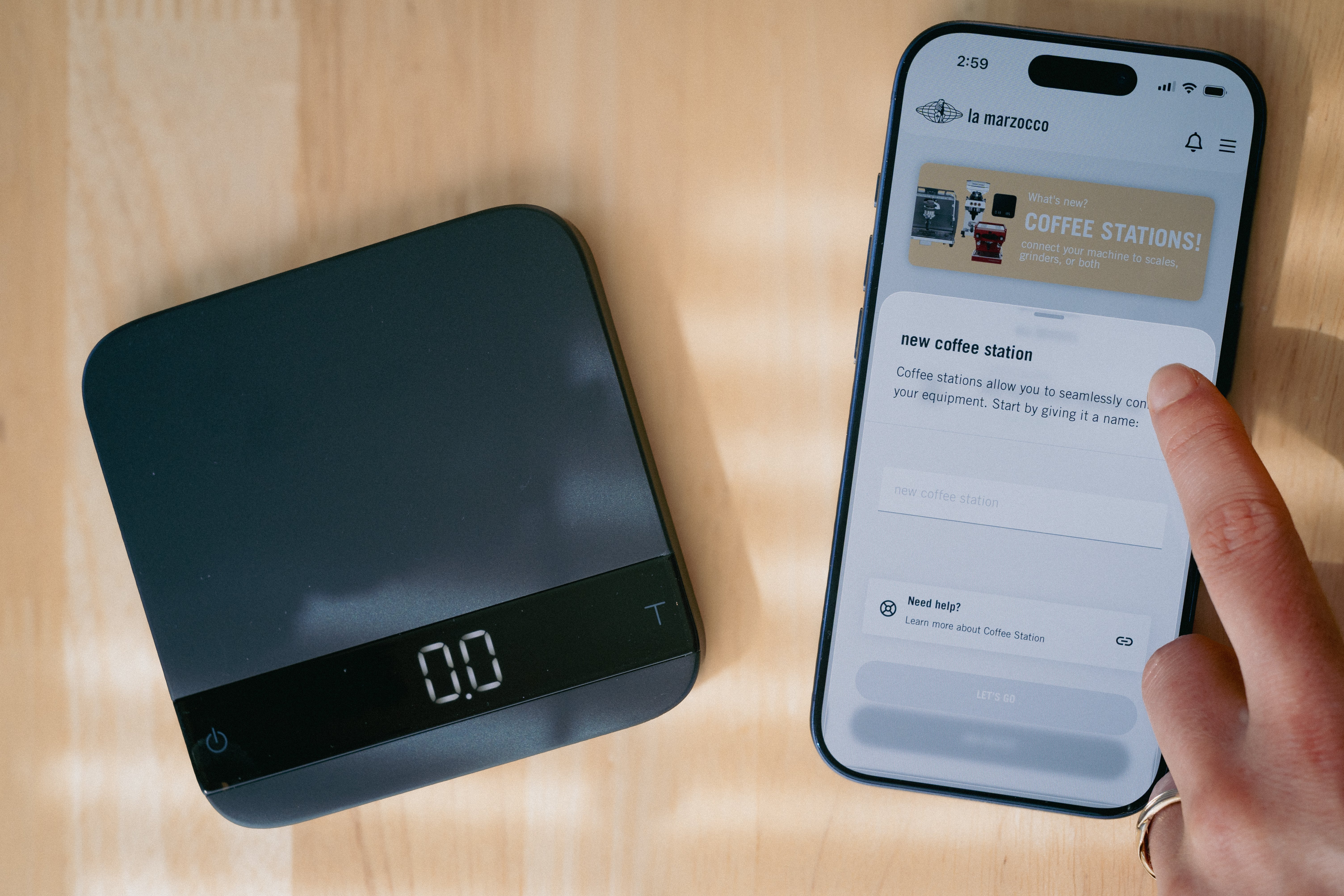 (1) Add both scales to your Coffee Station in the La Marzocco app. Once added, you can assign each scale to its corresponding equipment during setup.